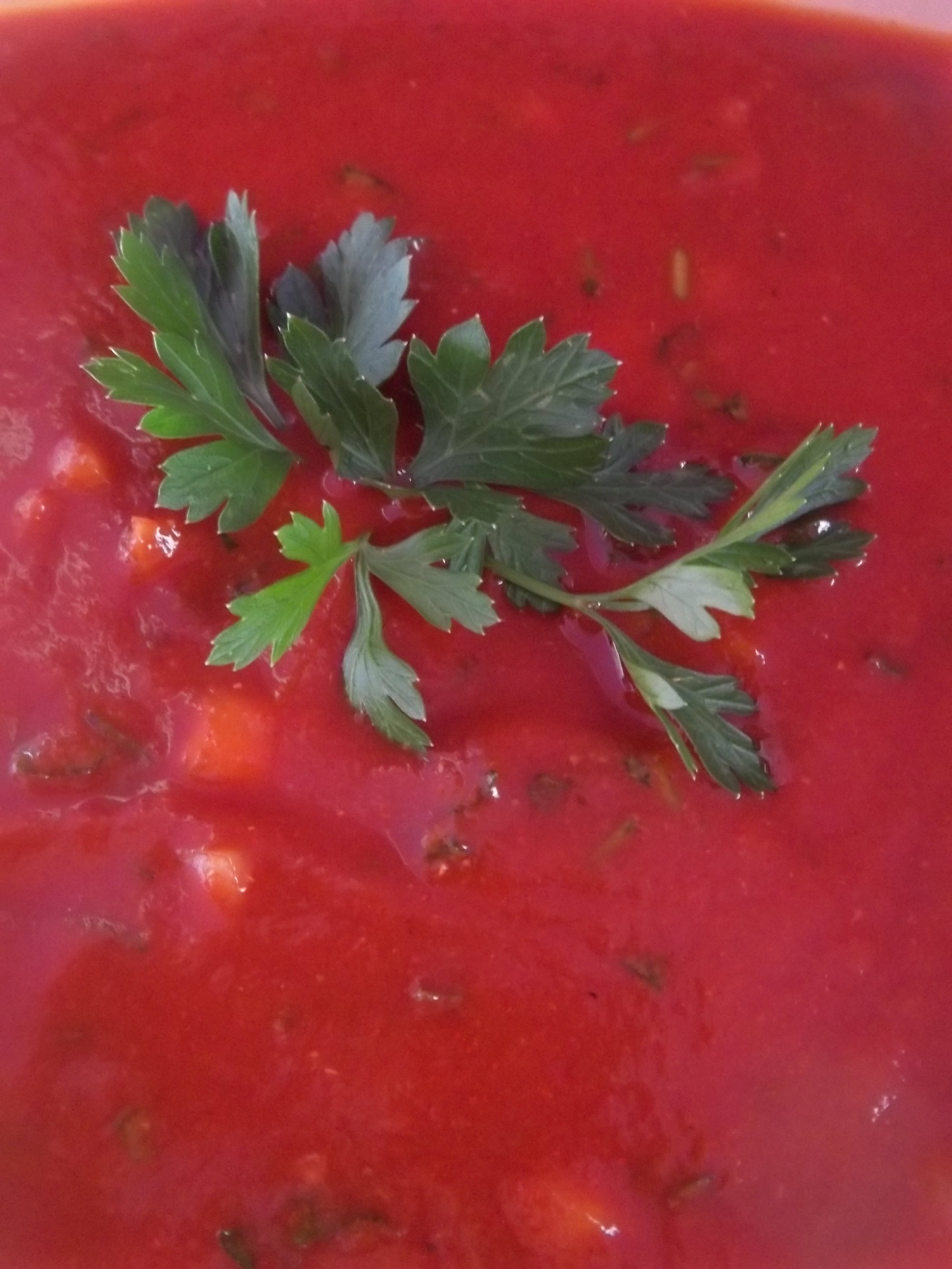Ingredients for spicy tomato sauce: 5 tbs of tomato puree, 1 medium sized onion, 1 clove of garlic, 2 tsp of dried red pepper (optional), half tsp of dried coriander, salt (amount dependent upon personal preference) and 20 grams of fresh parsley.