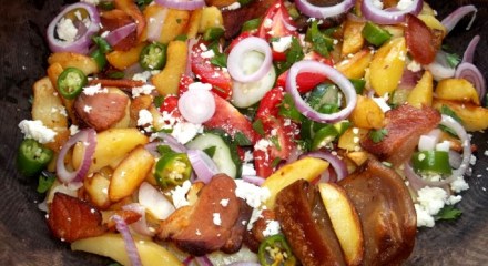 Ojakhuri is the generic name for meat (usually pork) and fried potatoes. In this family recipe we show how to make Ojakhuri with Rachuli bacon, fried potatoes and a salad that would be served at a supra (Georgian feast). Ingredients: 1 kilo of potatoes, 200 grams of Imeretian cheese, 400 grams of Rachuli bacon (or … Continue reading
