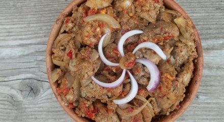 Nuts are a popular ingredient in Georgian cuisine. In this old, family recipe we show how to make a spicy hazelnut sauce for a fried chicken dish. Ingredients: 1 whole young chicken, 5 cloves of garlic, 150 grams of hazelnuts, 1 tsp of dried marigold, half tsp of dried coriander, half tsp of Blue Fenugreek, tiny pinch … Continue reading