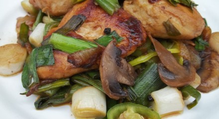 CHICKEN WITH GREEN GARLIC AND MUSHROOMS