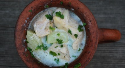 Chikhirtma (Georgian: ჩიხირთმა) is a boiled chicken and broth dish popular throughout Georgia as a family meal and also as a hangover cure. Turkey can be used instead of chicken but the dish is usually made with chicken. Ingredients: 1 whole chicken, 5 eggs, 2 medium sized onions, 3 tbs of flour, 2 bay leaves, … Continue reading