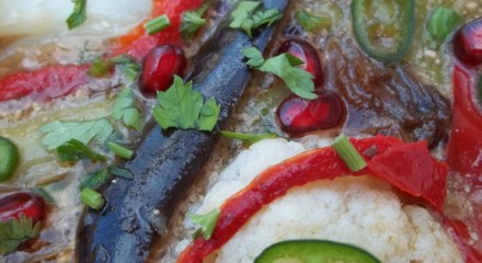 Satsivi (Georgian: საცივი) is a thick paste made from walnuts and served cold (‘Tsivi’ means ‘cold’ in Georgian). It is used in a variety of meat (usually chicken and turkey), fish and vegetable dishes. In this recipe we show how to make satsivi with a delicious combination of vegetables. Ingredients: 1 large eggplant, 1 large red pepper, … Continue reading