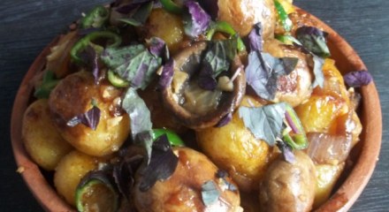 Mushroom Chashushuli is a family meal made with potatoes and mushrooms. It is especially good with new potatoes. Ingredients (4 servings): 700 grams of small new potatoes, 500 grams of mushrooms, 6 cloves of fresh garlic, 2 hot green peppers (or mild if you prefer), 2 large onions, 50 grams of fresh purple basil, oil and … Continue reading
