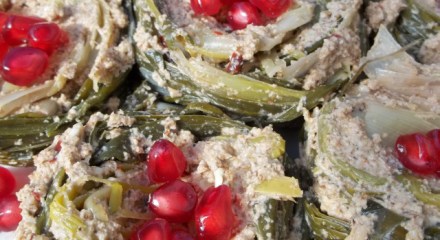Satsivi (Georgian: საცივი) is a thick paste/sauce made primarily from walnuts and served cold (‘Tsivi’ means ‘cold’ in Georgian). It is used in a variety of meat, fish and vegetable dishes. In this recipe we show how to make leek satsivi. Ingredients: 1 kilo of leeks, 300 grams of walnuts, 5-7 cloves of garlic, 1 tsp of … Continue reading