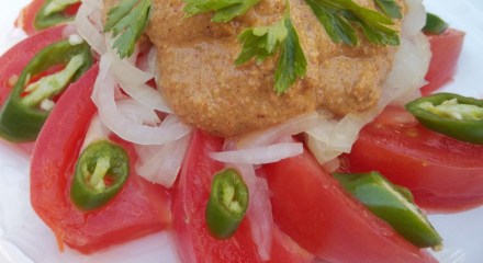 Nut salads are popular all year round in Georgia. In this recipe we show how to make a delicious tomato and walnut salad. Ingredients: 2 large tomatoes, 200 grams of walnuts, 1 medium sized onion, 3-4 cloves of garlic, 20 grams of fresh parsley, 1 level tsp of dried marigold, 2 hot green peppers, 2 tsp of … Continue reading