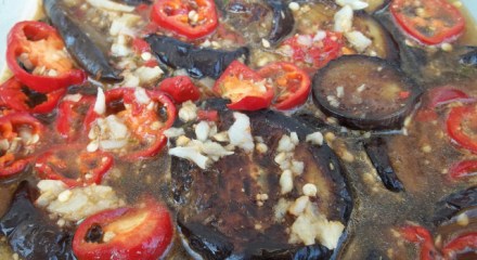 EGGPLANT WITH HOT PEPPERS, GARLIC AND AJIKA