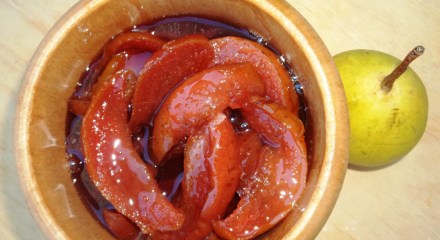 Pear Muraba is a delicious preserve made with pears and sugar and flavored with cloves and vanilla. It is eaten as a dessert and can be used as an ingredient in cakes. Ingredients: 2 kilos of firm pears (not over ripe), 1.5 kilos of sugar, 5 cloves, a third of a tsp of vanilla powder and 1.5 liters of … Continue reading