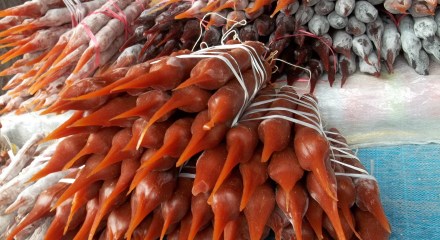 Churchkhela is a traditional sausage-shaped candy originating from the Caucasus region. It is a very popular food, combining two of Georgia’s favorites – grapes and nuts. Made by repeatedly dipping a long string of nuts in concentrated fresh grape juice it is delicious and nutritious and often called the Georgian ‘Snickers’! Georgian warriors carried Churchkhelas with them because they contain enough calories for … Continue reading →